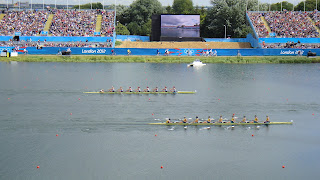 Olympic rowing underway. I thought private schools in Australia were rich in assets until I discovered that the Olympic rowing course belongs to Eton College.